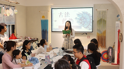上午10時(shí)30分,活動(dòng)在恒蘊非遺研習館正式啟幕。開(kāi)營(yíng)儀式上,世博園工作人員詳細介紹了本次活動(dòng)的意義及流程,闡述了保護非遺文化與傳承非遺技藝的重要性。隨后,非遺傳承人帶領(lǐng)大家走進(jìn)“古法植物藍染”與“中草藥香包”的世界,通過(guò)生動(dòng)的講解,參與家庭們了解到藍染技藝的歷史淵源、發(fā)展脈絡(luò )及四大類(lèi)別,同時(shí)認識中草藥香包的文化內涵與藥用價(jià)值。